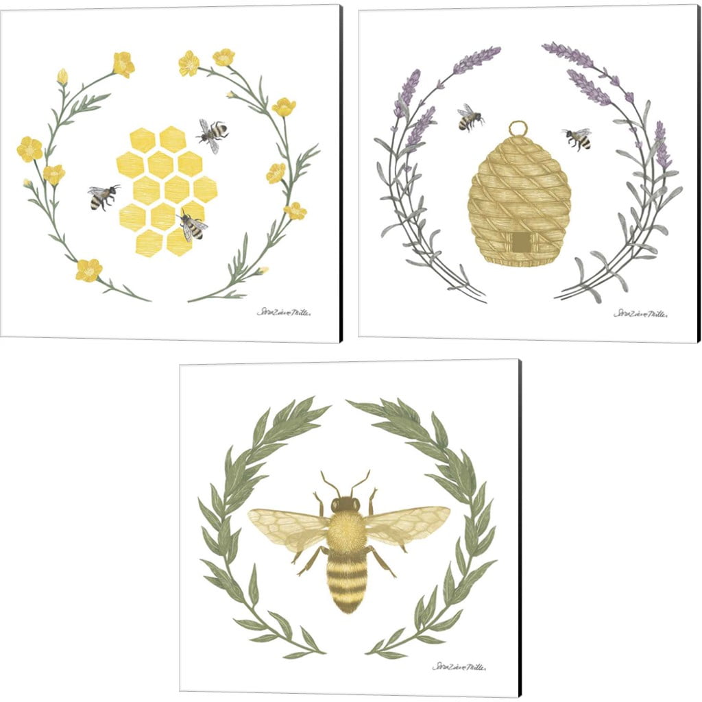 Great Art Now Happy To Bee Home Yellow By Sara Zieve Miller 3 Piece Canvas Art Set Each 14 W X 14 H Walmart Com